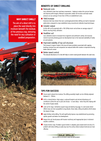 Closely monitor crops. Provided a good rotation is adopted, grass weeds tend to be less of a problem with direct drilling as seeds stay near the surface where residual chemicals are most effective.