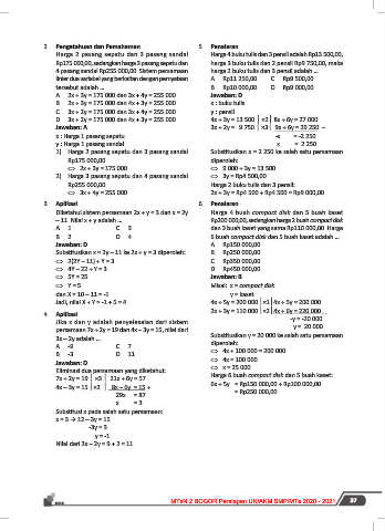 – 11. Nilai x + y adalah … Rp200.000,00, sedangkan harga 2 buah compact disk