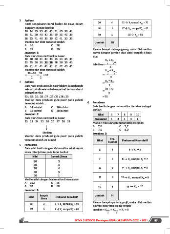Jawaban: B sama dengan jumlah dua data tengah dibagi