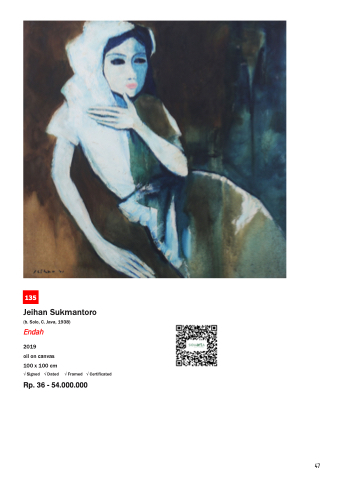 135 Jeihan Sukmantoro (b. Solo, C. Java, 1938) Endah 2019 oil on canvas 100 x 100 cm √ Signed √ Dated √ Framed √ Certificated Rp. 36 - 54.000.000 47