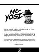 From living in a group home for at-risk youths to becoming known as yoga's modern day ambassador to the WEST, hip-hop artist, MC YOGI is on a mission to introduce yoga to large mainstream audiences."