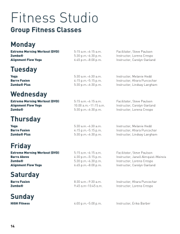 5:15 a.m.–6:15 a.m. 10:00 a.m.–11:15 a.m. 5:30 p.m.–6:30 p.m.