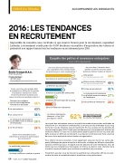 la plupart des entreprises mesure la qualité des embauches par des méthodes de rétroaction (ex : évaluations d’embauche) ou encore par des méthodes à plus long terme (ex : taux de rétention, taux de roulement). Et vous, quelles sont les priorités de votre entreprise pour 2016 ? Quels sont les éléments qui vous empêchent d’attirer les meilleurs talents ? Si vous ne vous êtes jamais posé la question et que vous avez des dé s à relever en 2016 en recrutement, vous devriez commencer par faire une prise de recul et une analyse de votre situation et organisation.