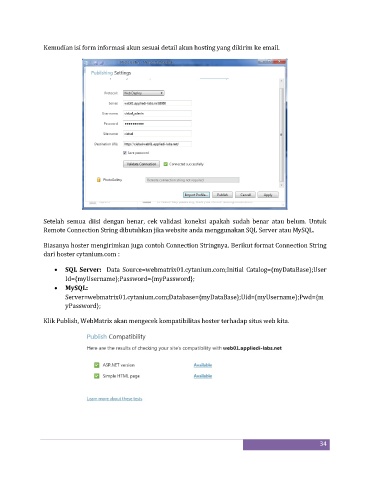 Klik Publish, WebMatrix akan mengecek kompatibilitas hoster terhadap situs web kita.