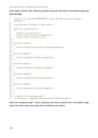 Ketika kita mengakses page 1 secara langsung maka library template akan memampilkan page