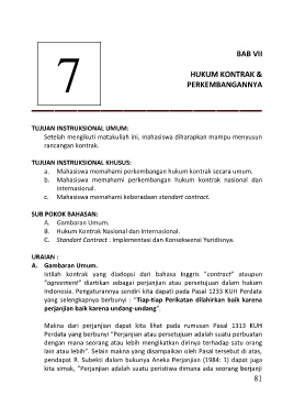 b. Mahasiswa memahami perkembangan hukum kontrak nasional dan