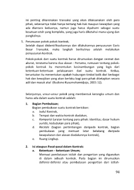 2. Isi ataupun Pasal-pasal dalam Kontrak: