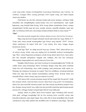 lagu “Dan”, namun bagaimana pentingnya sebuah sinergi dalam dunia bisnis. Saya yakin,