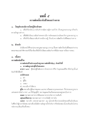 นักเรียนจะไดศึกษาประมวลกฎหมายอาญา ภาค ๒ เรื่องความผิดเกี่ยวกับชีวิตและรางกาย