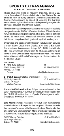 Club's 100% Contribution: $2 per member based on the July 1 membership. Your club’s contribution is deposited in the “2-X1 Charities Inc. - Sports Extravaganza A/c”. Designate the check for 100%.