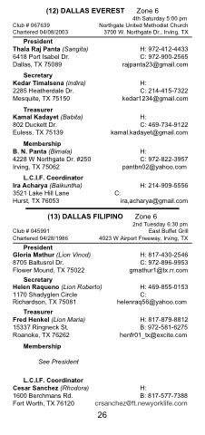 L.C.I.F. Coordinator Ira Acharya (Baikuntha) 3521 Lake Hill Lane Hurst, TX 76053