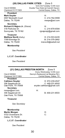 Treasurer Matthew Nevitt (Kathy) 7308 Elmridge Dr. Dallas, TX 75240