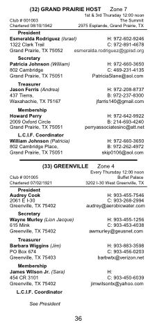 L.C.I.F. Coordinator William Johnson (Patricia) 802 Cambridge Place, Grand Prairie, TX 75051