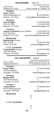 Secretary Larry N Eggett 7201 FM 1388 Kaufman, TX 75142