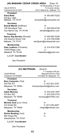 (40) MABANK CEDAR CREEK AREA Zone 10 1st Wednesday 5:15 pm