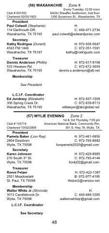 L.C.I.F. Coordinator Ed Jendrzey (Elizabeth) 306 Spring Creek Dr. Waxahachie, TX 75165
