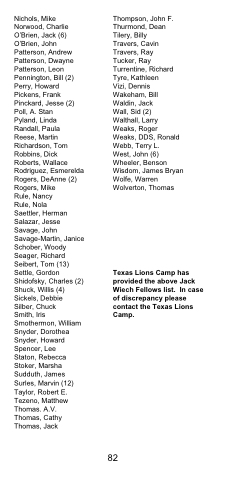Texas Lions Camp has provided the above Jack Wiech Fellows list. In case of discrepancy please contact the Texas Lions Camp.