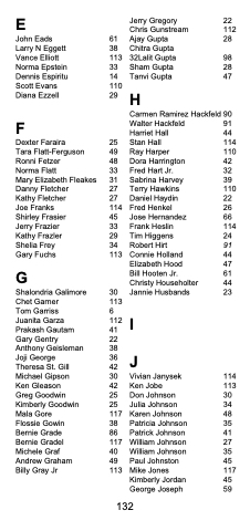 25 Stan Hall 114 49 Ray Harper 110 48 Dora Harrington 42 33 Fred Hart Jr. 32 31 Sabrina Harvey 39 27 Terry Hawkins 110 27 Daniel Haydin 22 114 Fred Henkel 26 45 Jose Hernandez 66 33 Frank Heslin 114 29 Tim Higgens 24 34 Robert Hirt 91 113 Connie Holland 44