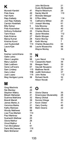 Woody Mathews 99 Lisa Free-Martain 114 Paul Martinez 34 Sushanth Mathew 25 Gloria Mathur 26 Vinod Mathur 4 Tom McCallister 61 Darie McCleaves 116 Mark McDaniel 23