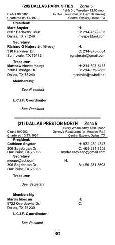 Treasurer Matthew Nevitt (Kathy) 7308 Elmridge Dr. Dallas, TX 75240