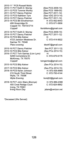 2010-11 * PCS Russell Mutto 2010-11 PCT Keith D. Murray 2011-12 PCS Tommie Worthy 2011-12 PCT Danny Fletcher 2012-13 PCS Kathleen Tyre 2012-13 PCT Danny Fletcher 2013-14 PCS Bill Smothermon
