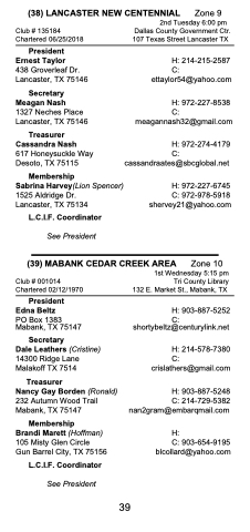 (39) MABANK CEDAR CREEK AREA Zone 10 1st Wednesday 5:15 pm
