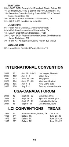 30 - 31 MD-2 State Convention – Waxahachie, TX 31 – LCI PU-101 deadline for submittal