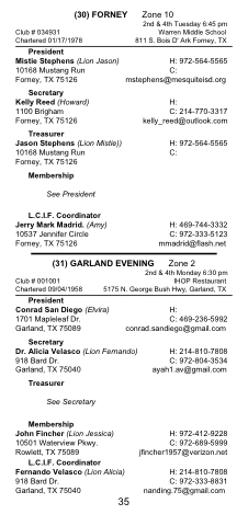 L.C.I.F. Coordinator Jerry Mark Madrid. (Amy) 10537 Jennifer Circle Forney, TX 75126