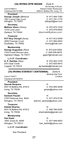 (35) IRVING EVEREST CENTENNIAL Zone 6 Meeting Day/Time