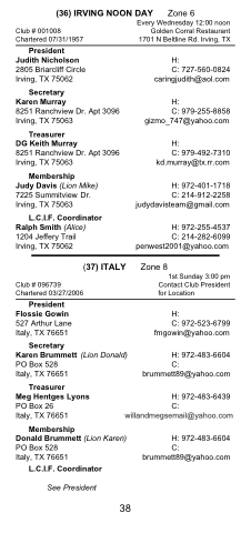 Judy Davis (Lion Mike) 7225 Summitview Dr. Irving, TX 75063