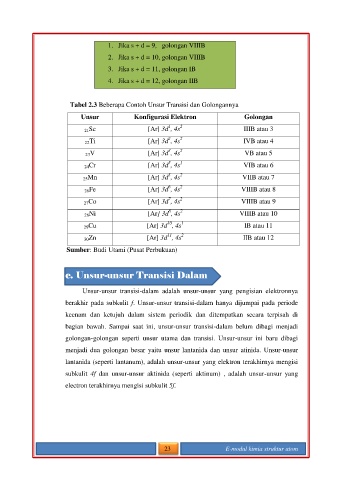 Tabel 2.3 Beberapa Contoh Unsur Transisi dan Golongannya