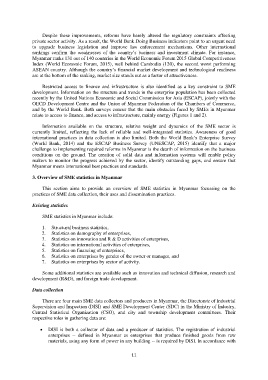 This section aims to provide an overview of SME statistics in Myanmar focussing on the