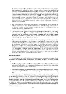Table 1 shows the users of SME statistics in Myanmar. For example, the Planning Department