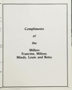 >ararj id, Compliments of the Millers Francine, Milton, Mindy, Louis and Betsy tlieclisi ala