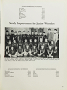 First Row: G. Galton, VanNess, D. Hewit, J. Abrams, Urbanski, and VanDoren. Second Row: P. LeGrand, W. Brower, Powell, Haas, May, Ruff, Fidler, Dwyer, and K. Brown. Third Row: Held, S. Brower, Horne, Weiss, M. Rubin, G. Chapman, Siegel, M. Snyder, Pollen, J. Streib, Mr. O'Hare (coach), and R. Hewit (coach).