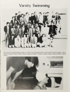 Varsity Swim Team First Row Kneeling, left to right: S. Lin; J. Duke; A. Lin; J. Whittingharm A. Moreno-, L. Wilson; M. Miller; K. Karnel. Second Row: J. Gatti; D. Bernet-, M. Pittis-, Coach Brown; B. Moody-, G. Bouterse; A. Prassen M. DiFrancesco; J. Taliaferro-, T. Murray; J. Dreien C. Sanders; A. Sawhney; A. Yoder; B. Del Vento. Third Row: A. Nocken D. Dillon; E. Jensen; D. Cappuccio-, D. LomnitZ; D. Crockett; M. Lissinna; S. Ashton; M. Petrocelli; J. Blair; G. Oross; M. Koplowitz