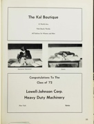 The Kal Boutique 12 Worth Ave. Palm Beach, Florida All Fashions for Women and Men Decisions! Decisions! Congratulations To The Class of '72 Zzzzzz Lowell-Johnson Corp. Heavy Duty Machinery New York Boston 121