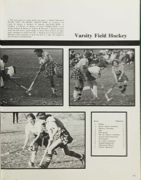1. The team joins in a cheer before the game. 2. FIELD HOCKEY TEAM. LEFT TO RIGHT, FRONT ROW: E. Cordasco, M. Conti, K. Kenny, L. Rochat, N. Scherer; SECOND ROW: A. Childers, J. LeFever, S. Derrey, S. Stout; THIRD ROW: Coach Arlene Jachim, R. Brown, A. Ashton, B. Sermons. 3. Bonnie Sermons steals the ball with a quick dodge. 4. Susan Stout thwarts an oppo nent’s attempts to snatch the ball. 5. Backed up by Nancy Scherer, Maureen Conti attempts to grab the ball in a play that helped to win the State Championship.