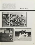 1. VARSITY TRACK, LEFT TO RIGHT, FRONT ROW: T. Young, R. Minard, W. Hanlon, J. Swails, D. Stout, M. Domino, G. Heller, R. Muccilli; SECOND ROW: J. Butler, A. Ashton, A. Von der Porten, T. Moore, G. Johnson, H. Zieler, M. Keating, T. LeGrand; THIRD ROW: Coach Ralph Muoio, R. Guss, B. Roach, C. Von der Porten, D. Bitterman, S. Mantron, J. MonagĀ han, Coach Joseph Procopio. 2. John Swails displays his winning hurdle-jumping technique. 3. Runners Gary Johnson and Chris von der Porten make a determined effort to win the 880 yard race. 4. The Rams begin the race as the gun sounds. 5. John Butler practices jumping the high hurdles.