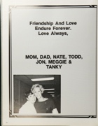 182 Friendship And Love Endure Forever. Love Aiways, MOM, DAD, NATE, TODD, JON, MEGGiE & TANKY