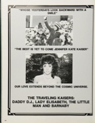 190 “WHOSE YESTERDAYS LOOK BACKWARD WITH A SMILE” “THE BEST IS YET TO COME JENNIFER KATE KAISER” rr OUR LOVE EXTENDS BEYOND THE COSMIC UNIVERSE. THE TRAVELING KAISERS: DADDY D.J., LADY ELISABETH, THE LITTLE MAN AND BARNABY