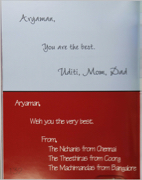 A S \lM W .A H , ^ou Are tke be-st. ^I/Uiti, ^A/low., Aryaman, Wish you the very best. From, Tine Nichanis -from Chennai The Theethiras -from Cocrq The Madiimandas -from bangalore