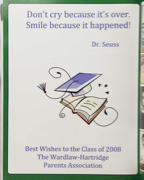 Don't cry because it s over. Smile because it happened! Dr. Seuss Best Wishes to the Class of 2008 The Wardlaw-Hartridge Parents Association