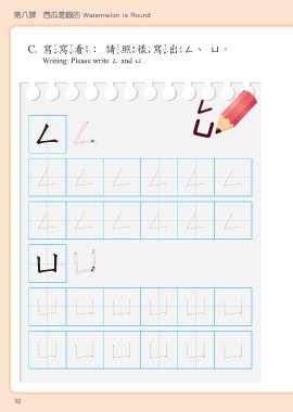 第八課 西瓜是圓的 Watermelon is Round C. 寫寫看:請照樣寫出ㄥ、ㄩ。 Writing: Please write ㄥ and ㄩ . ㄥ ㄥ ㄩ ㄥㄥㄥㄥㄥㄥ ㄥㄥㄥㄥㄥㄥ ㄩ ㄩㄩㄩㄩㄩㄩ ㄩㄩㄩㄩㄩㄩ 32