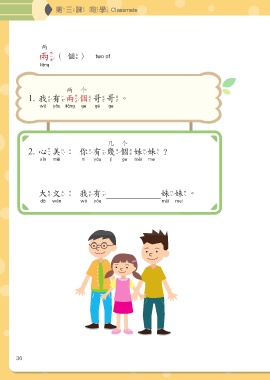 第三課 同學 Classmate 兩 兩 個 two of 兩 兩 個 1. 我有兩個哥哥 我 有 兩 個 哥 哥 幾 個 2. 心美:你有幾個妹妹? 心 美 你 有 幾 個 妹 妹 大文:我有 妹妹 大 文 我 有 妹 妹 36