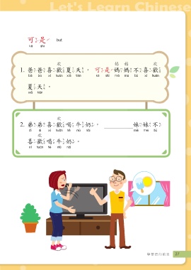 Let's Learn Chinese 可是 but 可是 歡 媽媽 歡 1. 爸爸喜歡夏天,可是媽媽不喜歡 爸爸喜歡夏天 可是媽媽不喜歡 夏天。 夏天 歡 2. 弟弟喜歡喝牛奶, 妹妹不 弟弟喜歡喝牛奶 妹妹不 歡 喜歡喝牛奶。 喜歡喝牛奶 學華語向前走 27