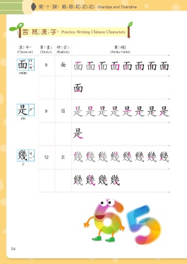 第十課 爺爺和奶奶 Grandpa and Grandma 習寫漢字 Practice Writing Chinese Characters 漢字 筆畫 部首 筆順 (Character) (Stroke) (Radical) (Stroke Order) 面 9 面 面 是 9 日 是 幾 12 ㄠ 幾 54