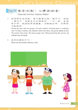 1. 把同學分成兩組,每人額頭上貼一張字卡,排成