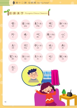 第十二課 在家嗎 Are You Home? 認讀漢字 Recognize Chinese Characters 喂為 請(請) 東(東) 明 誰(誰) 為 請 東 明 誰 阿 姨 叫 陳(陳) 心 阿 姨 叫 陳 心 美 同 學(學) 晚 再 美 同 學 晚 再 電(電) 話(話) 來(來) 吧 謝(謝) 電 話 來 吧 謝 您 您 82