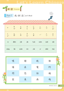 Let's Learn Chinese 練習 Exercise Part I 我會念 Let’s Read 阿 電 在 家 話 問 為 謝 請 來 晚 您 再 姨 誰 嗎 阿 電 在 家 話 問 為 謝 請 來 晚 您 再 姨 誰 嗎 喂 謝 晚 誰 請 在 電 阿 問 您 話 姨 家 來 再 嗎 學華語向前走 85